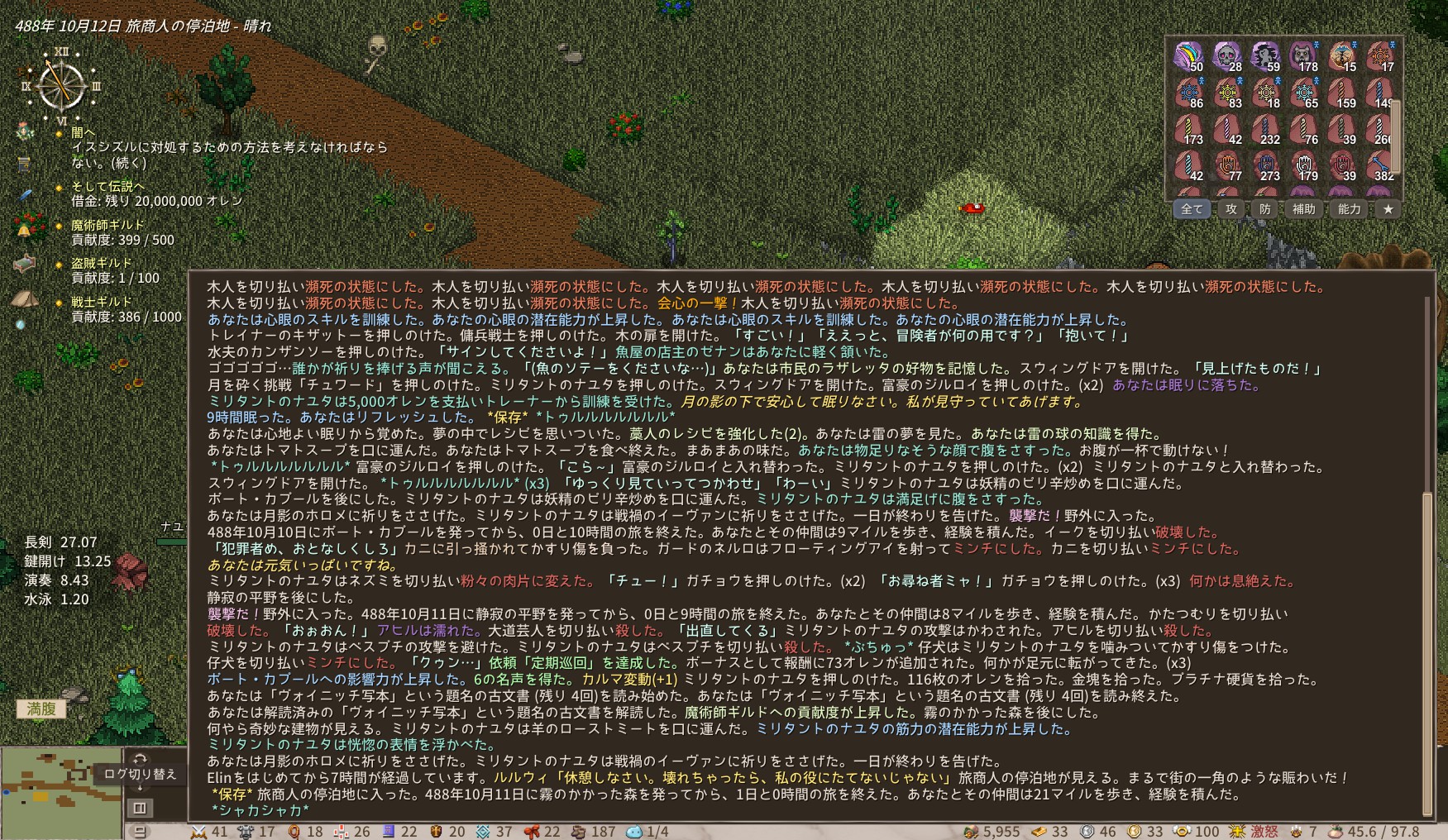 Elonaでも一定時間遊ぶとこのようにログに色々なキャラからのコメントが来るのですが、今回もあってちょっとうれしいです。なお総プレイ時間は現在160時間超え。1ヶ月でこれですよ(震え)
