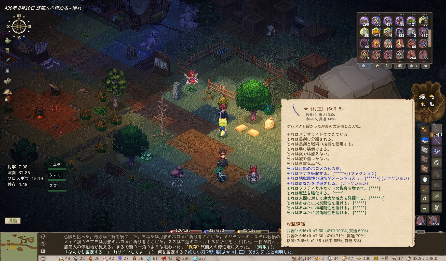 ウォーモンガーと村正を交換し、より魔法剣士向けの装備へ。ここまで来ると霊符で何をつけるか迷ってくるな……。出血耐性がなくなったのは痛いですが、譲渡先は死なれたらまずいところなのでこれはこれでヨシ。