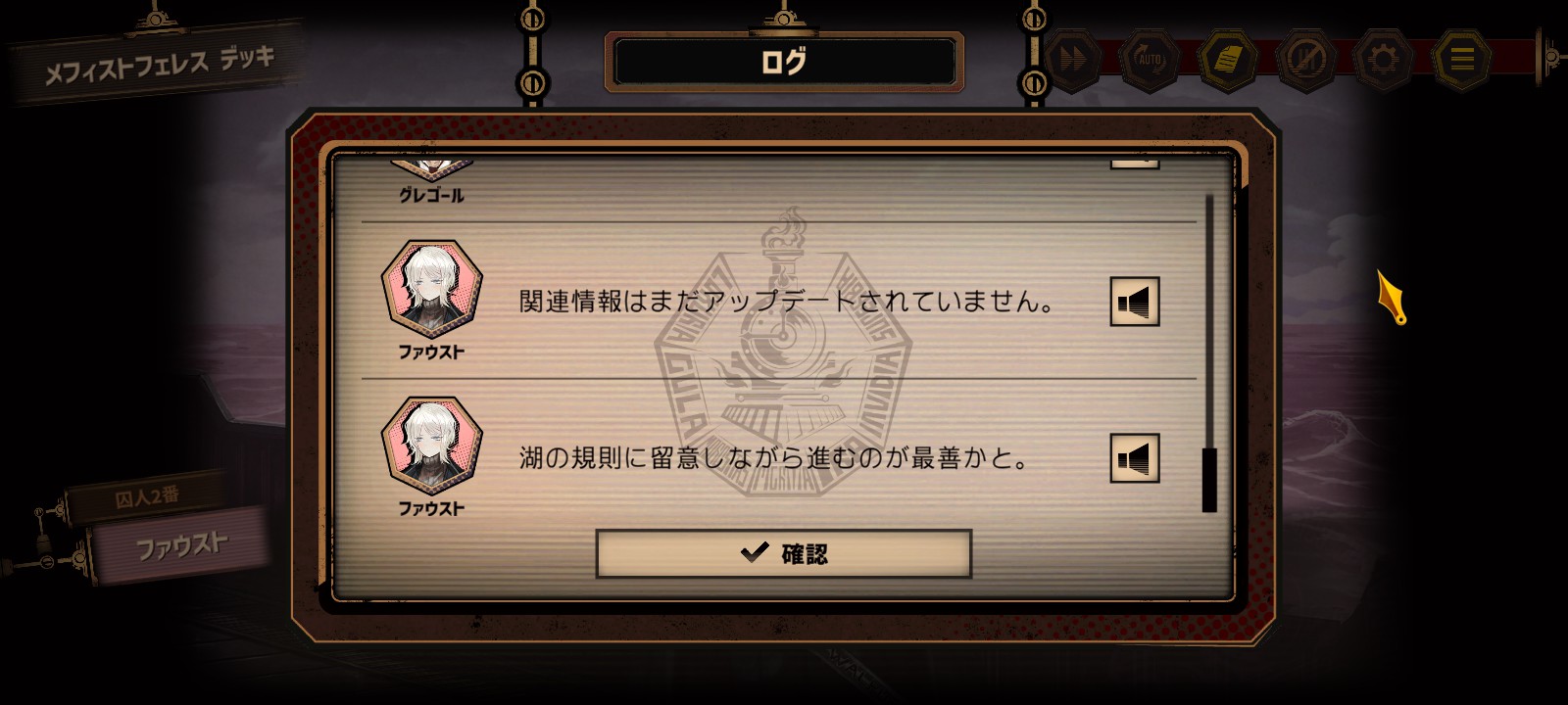大湖については囚人の中で一番熟知しており、実際にそこへ行くことになった4章ではその知識と実力を十二分に発揮してくれます。ちなみに、彼女の担当章は4章。エイハブというある意味ヤベーBBAも出てくるので読み応えがあります。なんだあのBBA。