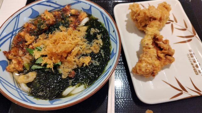 で、うどんはいつもの丸亀製麺の味。大量の海苔と共に味わっても海苔と麺どちらかが負ける訳ではなく、きちんとバランスの良い味に仕上がっています。海苔単体でも美味しい。うどんに入れる海藻ってわかめのイメージありますけど、海苔もありという知見を得ました。まぁ問題は実際に家でやろうとした場合に佃煮じゃない生海苔がスーパーとかに売ってるか怪しいって事ですかね……。