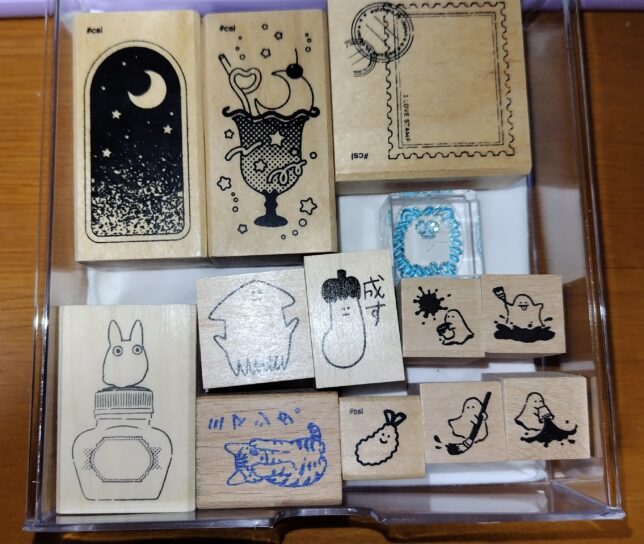 それと、スタンプはこれ以降少し増えました。月の窓、クリームソーダ、切手、えびふりゃー、おばけちゃん4種は新規購入したものです。使う機会はあまりないのですが、可愛くてついね……。