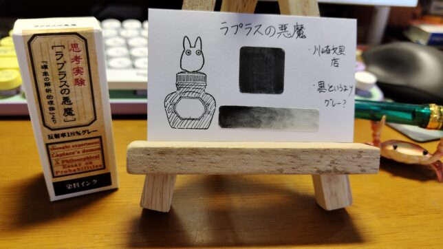 同じく川崎文具店さんから出ている思考実験シリーズ「ラプラスの悪魔」。リンバスつながりでゲシュタルト崩壊と迷いましたがこちらにしました。黒系は各メーカーから出ている純正BLACKで事足りることが多く、灰色と言ってもコトバノイロ蜘蛛の糸のような明るい灰色しか持っていないという。