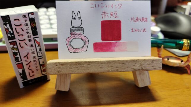 こちらは老舗万年筆専門店の川崎文具店さんの、花札の役をモチーフにしたインクです。そしてこちらなんとおみくじ式で、開けるまで何色が入っているかわかりません! 今回は赤短が入っていました。