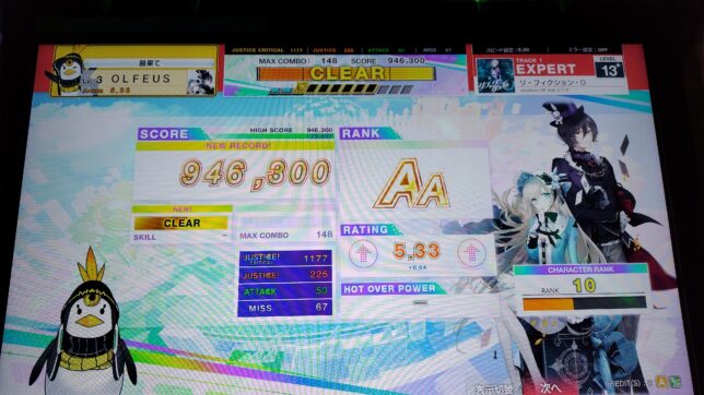 CHUNITHM。今だ赤譜面が限界です。リフィクションOはお気に入りなのでよくやります。