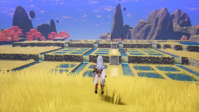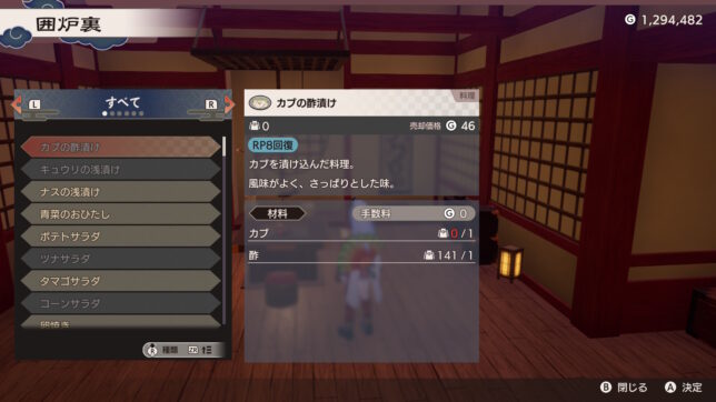さて、本作はいつものルンファクのように『ひとつの町』が舞台ではなく、四季の里それぞれを訪問し、開拓し、その里におわす神の神威を回復させていきながら、アズマの国の危機を救う、という流れになっています。それぞれの里には『開拓エリア』というエリアがあり、そこに畑や家や店やらなんやらを置ける上、置いたものによって主人公のパラメータ等にも強化が入ったり、経験値が入って里のレベルが上がったりする仕組みになっています。ストーリーでも里のレベルここまで上げてと指定されることもありますね。