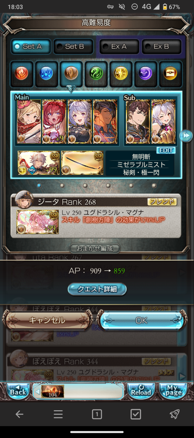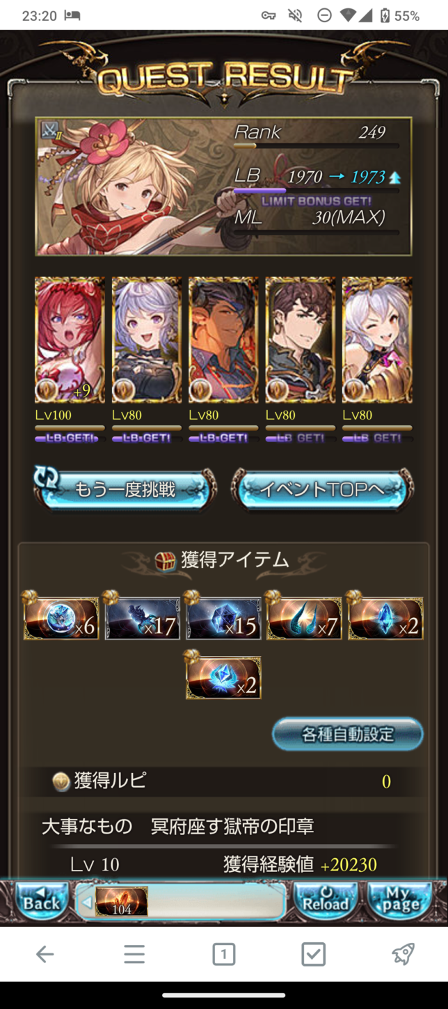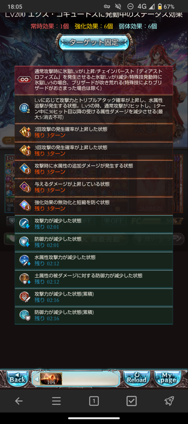 一応これで200までフルオート安定クリアできました。必須パーツは主人公が握る無銘(魔獄)とリミゴブロくらいでしょうか。クリスマスラインハルザは硬いのですが、奥義ループ始動が少々遅いので、持っていれば水着リッチや水着ルオーとバトンタッチさせるといいかもしれません。また、ディスガが切れた瞬間にディスペルを叩き込めるよう、高頻度ディスペル役を投入しておくと更に安定するかと思います。今回は土サテュロスに担当してもらいました。